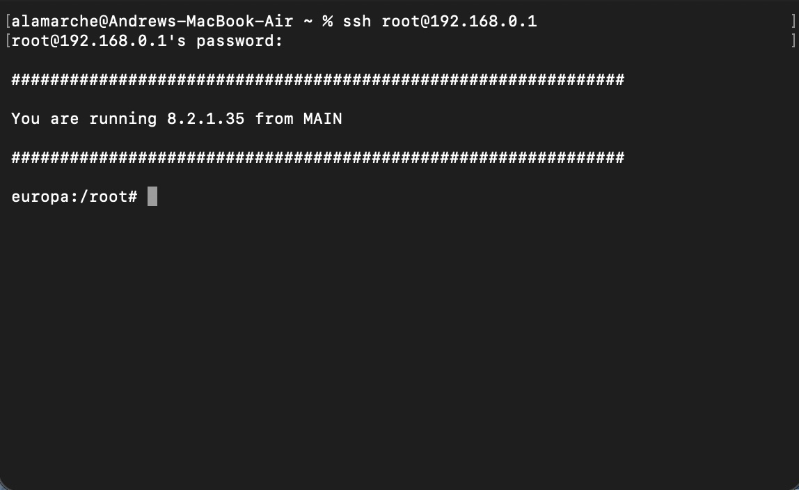ssh root@192.168.0.1