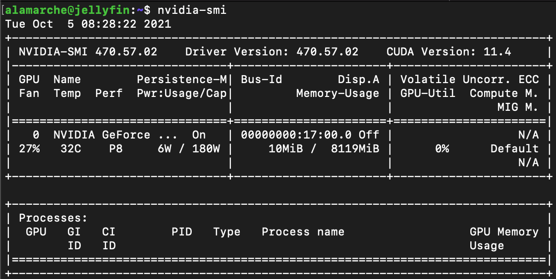 The official Nvidia docs for installing the drivers can be found here. I’ll give a quick rundown of how this should work. We’re going to add Nvidia’s repository on both the host and the container so that we hopefully get matching driver versions, regardless of what’s available from the package manager for our distro.